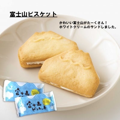 富士山をイメージした可愛らしいサクサクのビスケットにホワイトミルククリームをサンドしたビスケット。